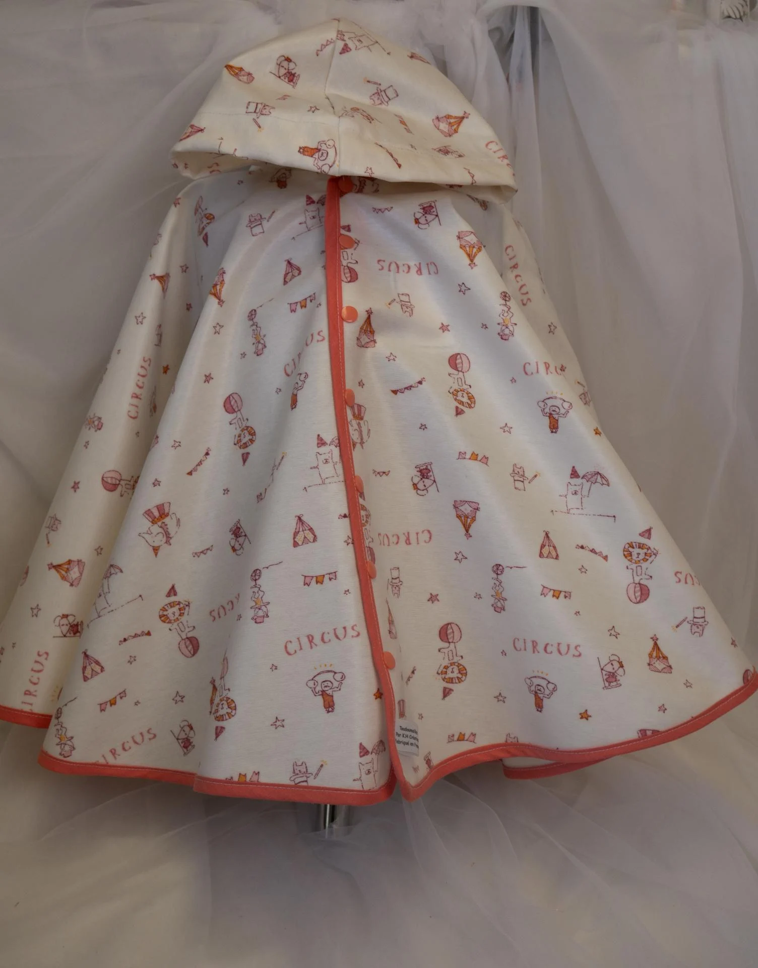Chaque cape est confectionnée à la main dans notre atelier, avec des finitions soignées et des motifs joyeux qui plaisent aux enfants.